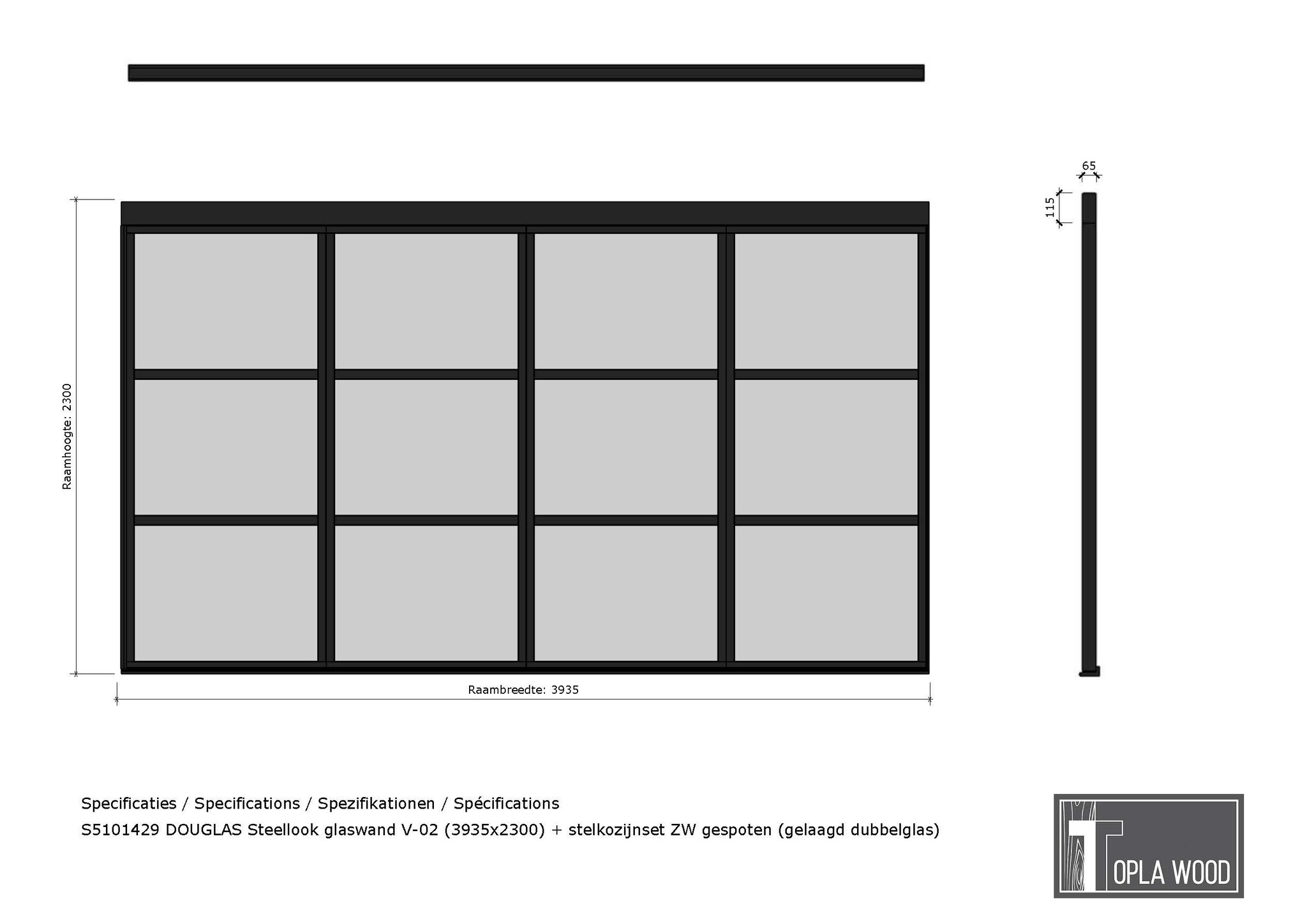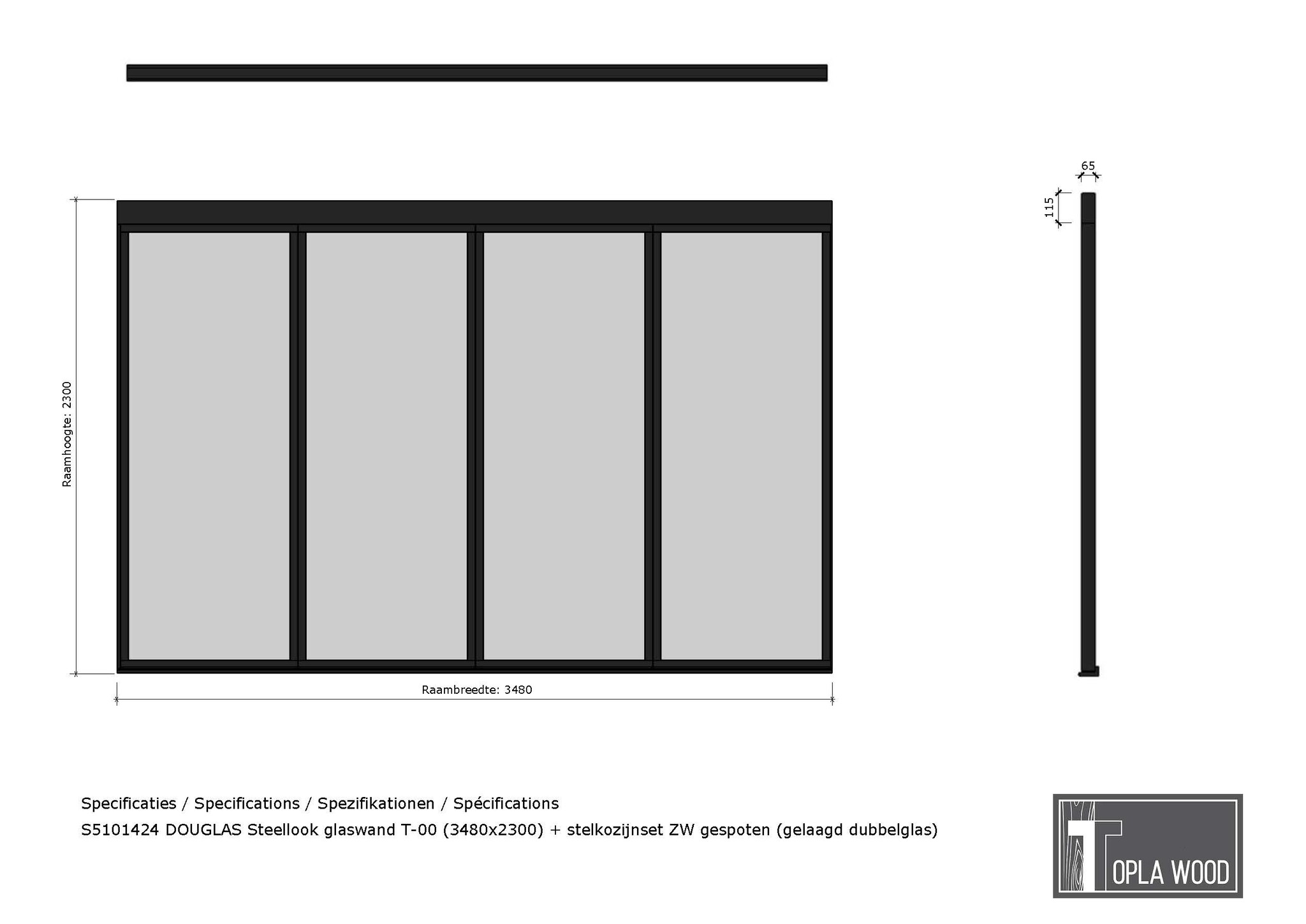 Onze Steellook Glaswand is de perfecte aanvulling voor buitenverblijven en veranda’s. Met een frame van hoogwaardig Douglas hout biedt deze glaswand niet alleen bescherming tegen weersinvloeden, maar geeft het ook een warme en robuuste uitstraling. Dankzij de verschillende typen glas, afmetingen en roedeverdelingen, is deze glaswand volledig aan te passen aan uw stijl en behoeften. Onze viervoudige steellook glaswand is leverbaar in breedtematen van 348 cm en 393,5 cm.